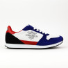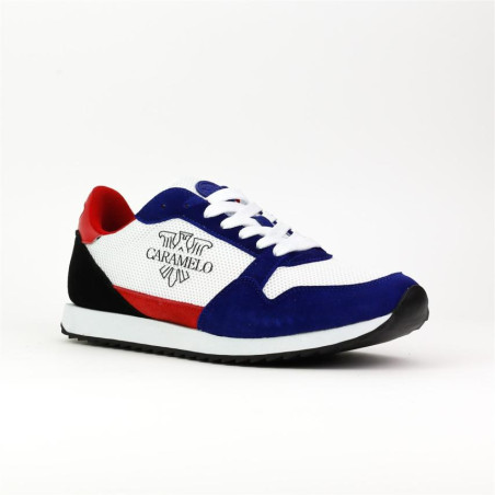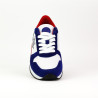 SNEAKER SERRAJE COMBINADO AZUL, BLANCO NEGRO. PISO LIGERO MICROPOROSO.