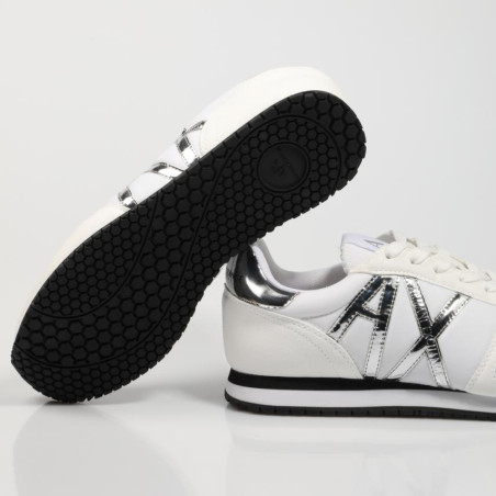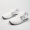 Sneaker serraje y tejido combinado con plata. Cierre cordones y suela ligera microporoso.