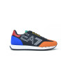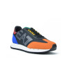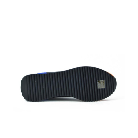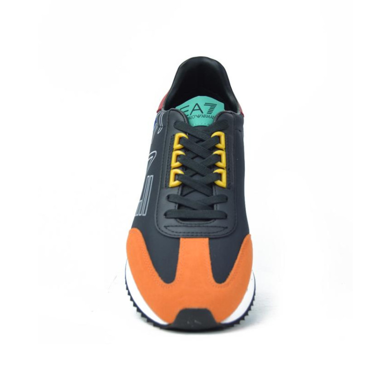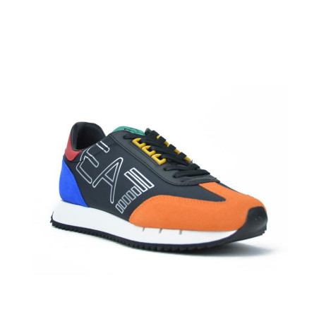 Sneaker con cordones marca ARMANI modelo DEPORTIVO CABALLERO CORDONES. Fabricado en color negro, puntera naranja y talon azul. Suela personalizada.