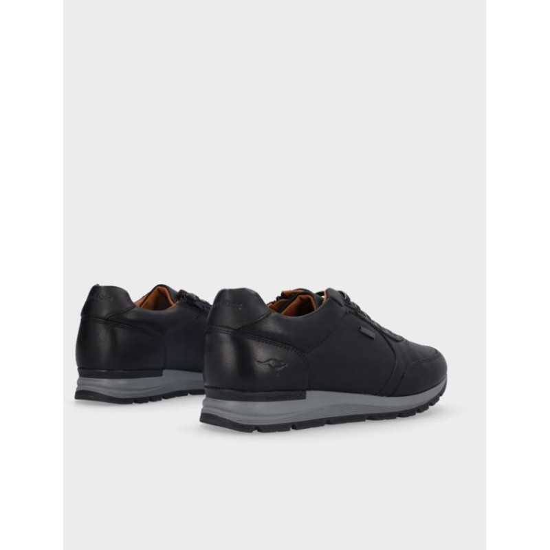 Deportivos hombre Kangaroos fabricados en piel negro, cierre con cordones, forro en piel con membrana resistente al agua y tecnología XDRY, suela de 3 cm altura, plantilla textil extraible termoconformada, fabricado en España. Composición: Empeine: Piel. Forro: Piel. Plantilla: Textil. Suela: Fibra sintética. Componente principal: Piel