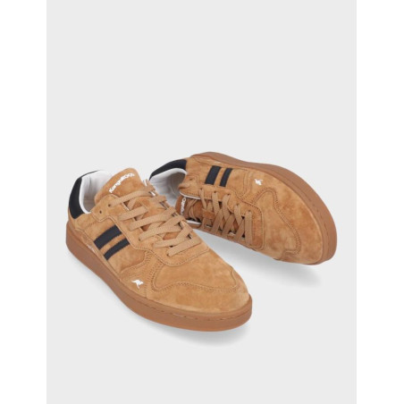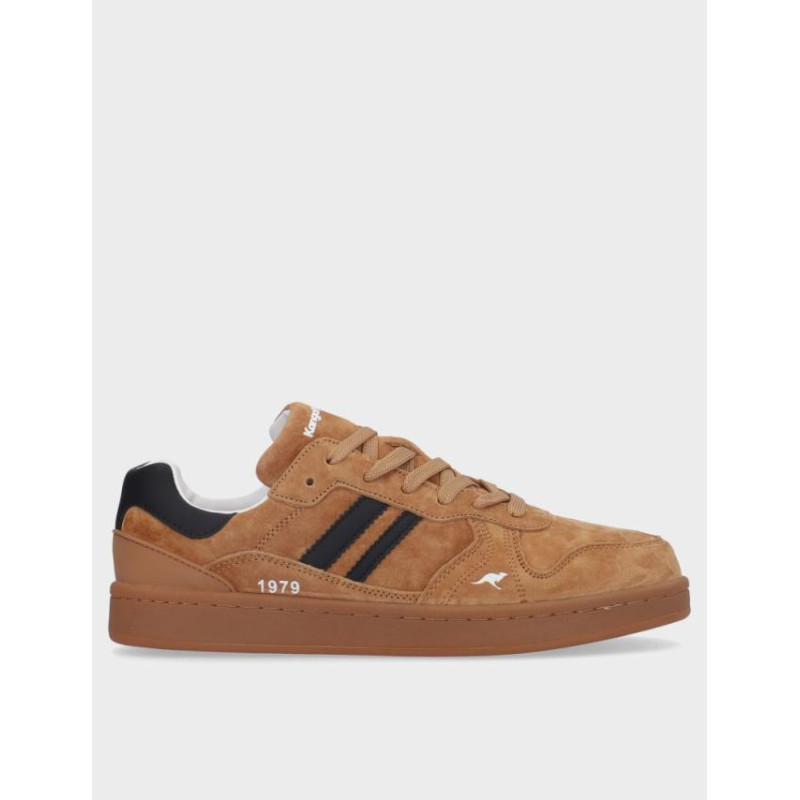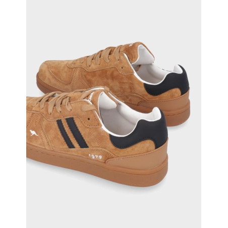 Deportivos hombre Kangaroos fabricados en piel y serraje camel, cierre con cordones, suela de 2,5 cm de altura, forro combinado textil y sintetico, plantilla textil extraible termoconformada, fabricado en España. Composición: Empeine: Piel/serraje. Forro: textil/sintetico. Plantilla: Textil. Suela: caucho. Componente principal: Piel/serraje