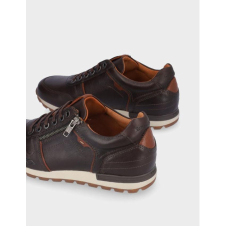 Deportivo Kangaroos hombre fabricado en piel marrón, forro de piel, cierre de cordones y cremallera lateral, plantilla textil extraible temoconformada, suela de 3 cm altura, fabricado en España. Composición: Empeine piel, forro piel, plantilla textil, suela de fibra sintética. Componente principal: Piel.