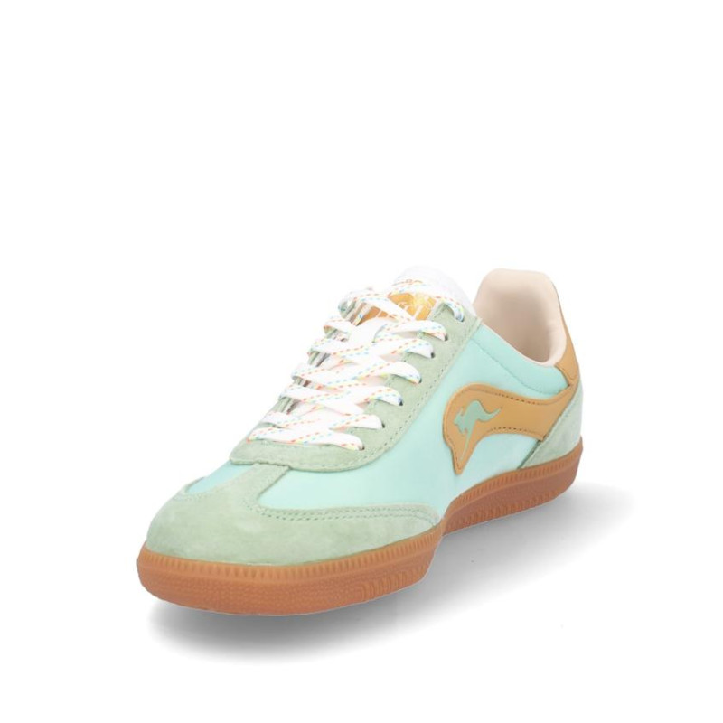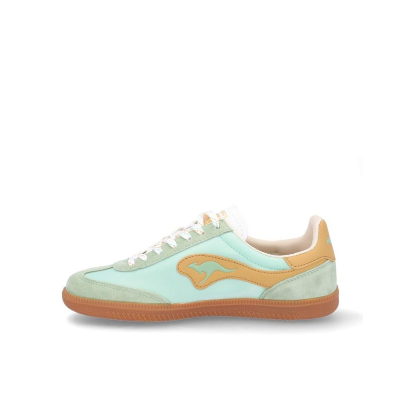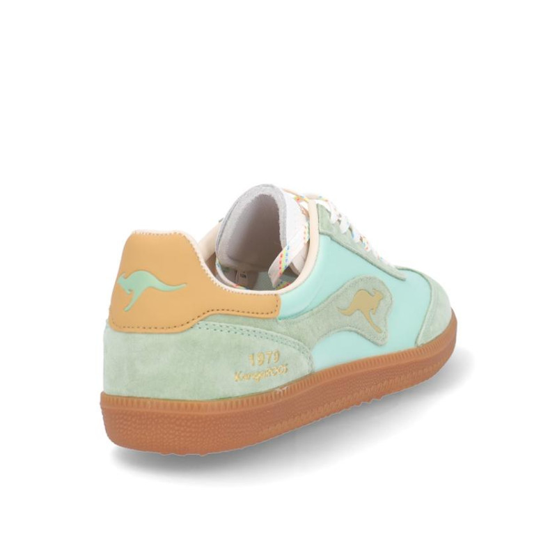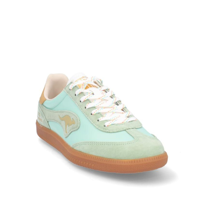 Deportivos chica Kangaroos fabricados en ante/textil menta, cierre con cordones, suela de 2 cm de altura, forro combinado textil y sintetico, plantilla textil extraible termoconformada. Composición: Empeine: Piel y textil. Forro: textil/sintetico. Plantilla: Textil. Suela: fibra sintetica.