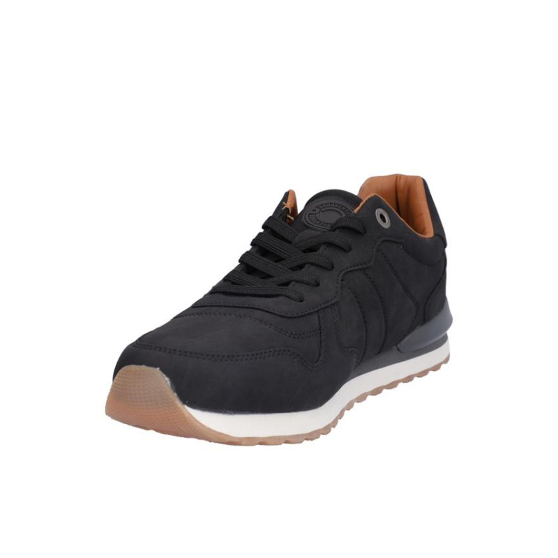 Deportivo de caballero Bonaventure fabricados en piel negro, cierre de cordones elasticos, forro combinado piel vacuno y textil, plantilla textil extraible termoconformada, suela de phylon de 4 cm altura. Composición: Empeine: Piel. Forro: Piel/Textil. Plantilla: Textil. Suela: Fibra sintética. Componente principal: Piel