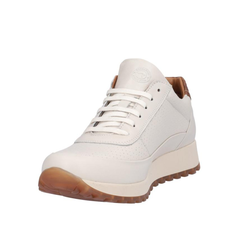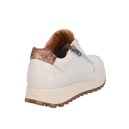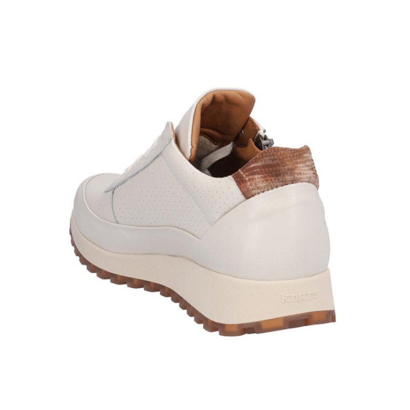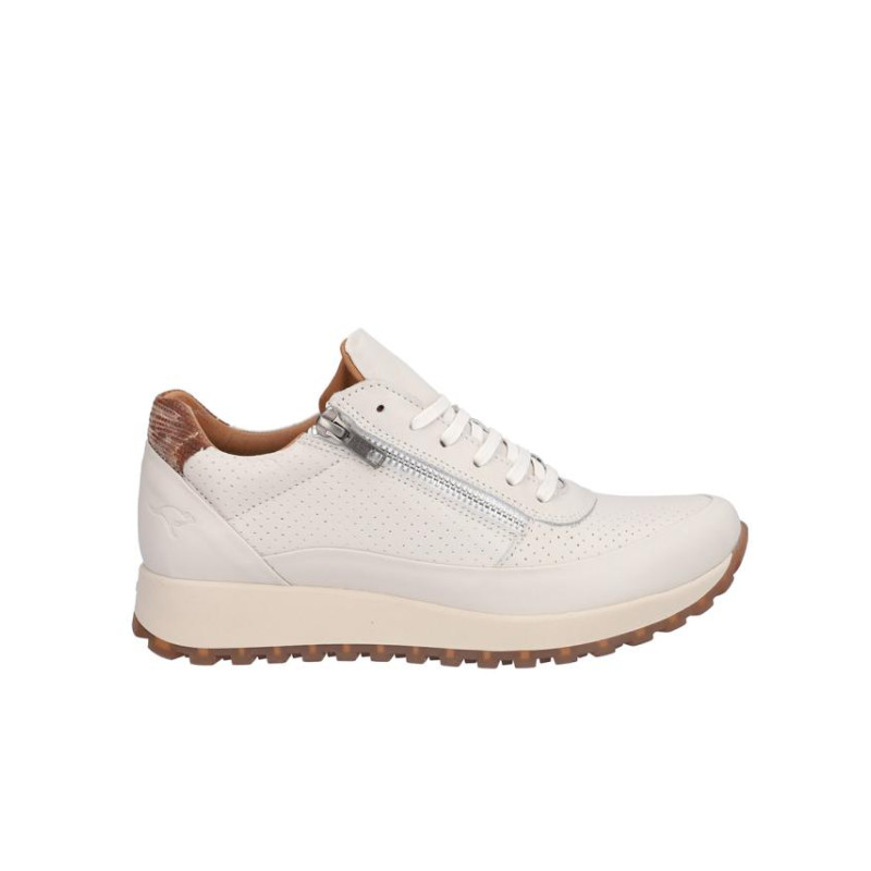 Deportivo de señora Kangaroos en piel color hielo, cierre de cordones y cremallera exterior para facilitar la puesta y retirada. Forro combinado piel/textil, plantilla textil extraible termoconformada, suela de 3 cm altura, fabricado en España. Composición: Empeine: Piel. Forro: Piel/textil. Plantilla: Textil. Suela: Fibra sintética. Componente principal: Piel.