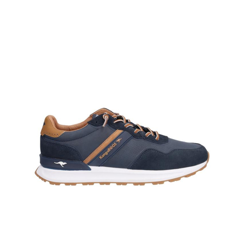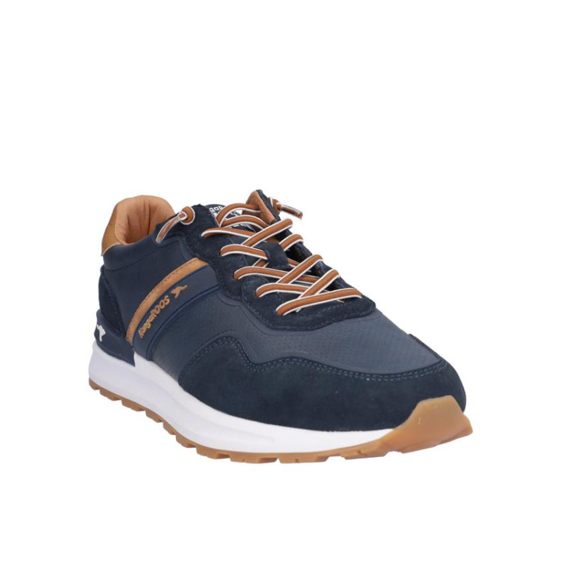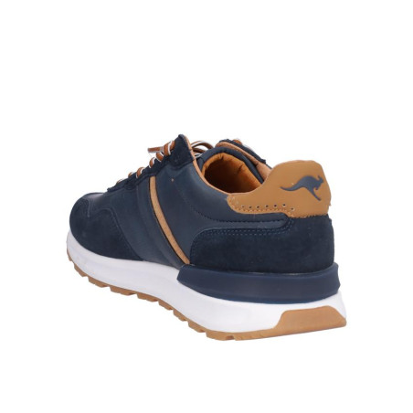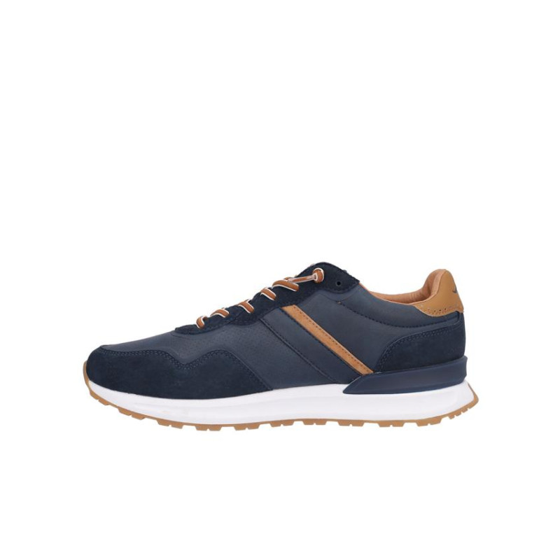 Zapatillas deportivas de caballero color marino, cierre de cordones elásticos, forro textil, plantilla extraible textil termoconformada, suela ligera de eva con 3 cm altura. Composición: Empeine: Piel/sintético. Forro y plantilla: Textil. Suela: Eva + goma.