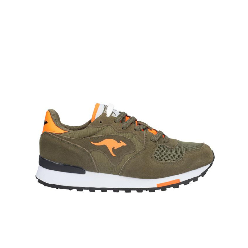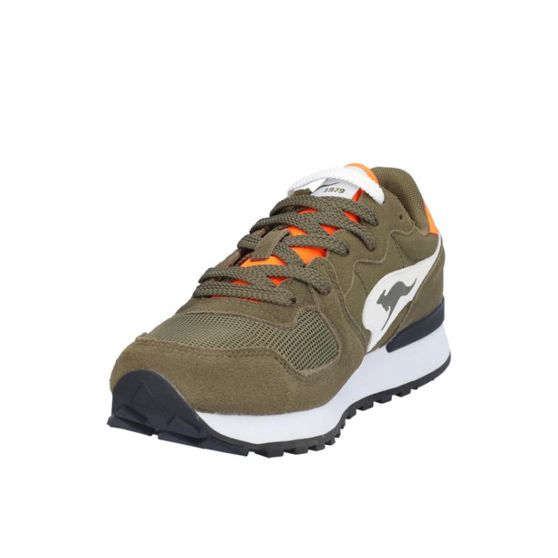 Zapatillas deportivas Kangaroos de caballero combinado kaki, cierre de cordones, forro textil, plantilla textil extraible termoconformada, suela ligera de eva de 3 cm altura. Composición: Empeine: Piel/Textil. Forro y plantilla: Textil. Suela: Eva+ goma.