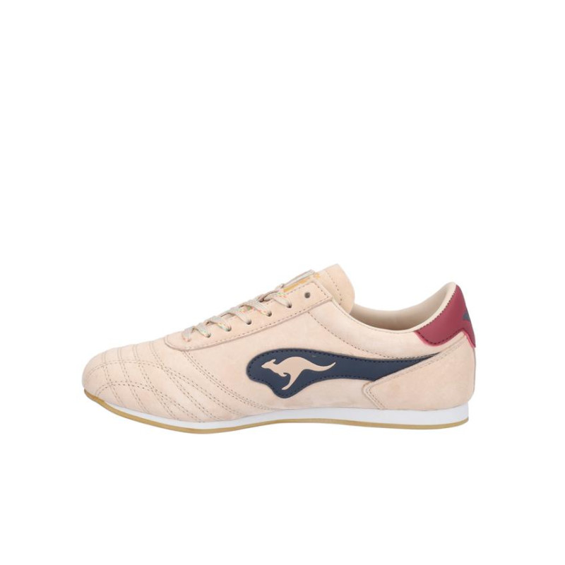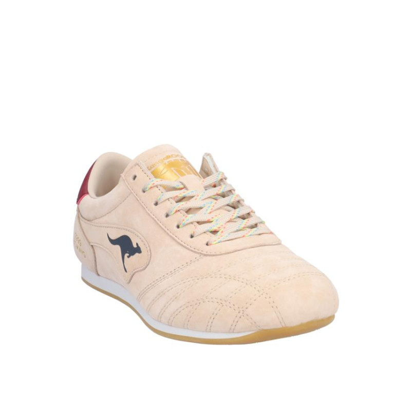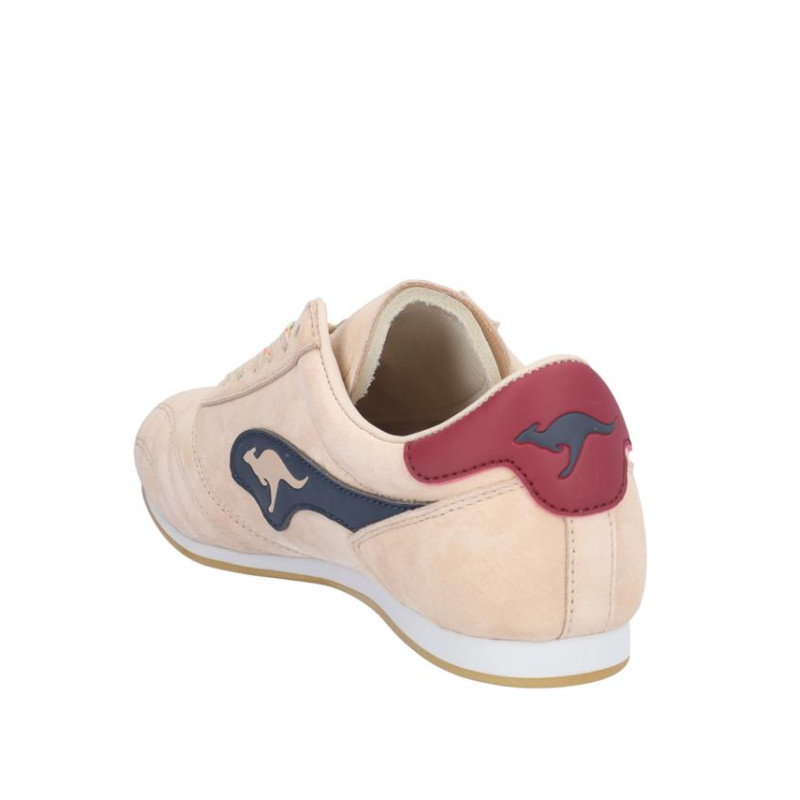 Zapatiila sport Kangaroos señora serraje combinado nude-berenjena, cierre de cordones, forro textil/otros materiales, plantilla textil extraible termoconformada, suela ligera de eva de 1,1 cm altura. Composición: Empeine: Piel. Forro: Textil/otros materiales. Plantilla: Textil. Suela: Eva + goma