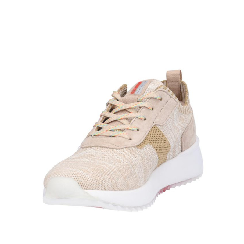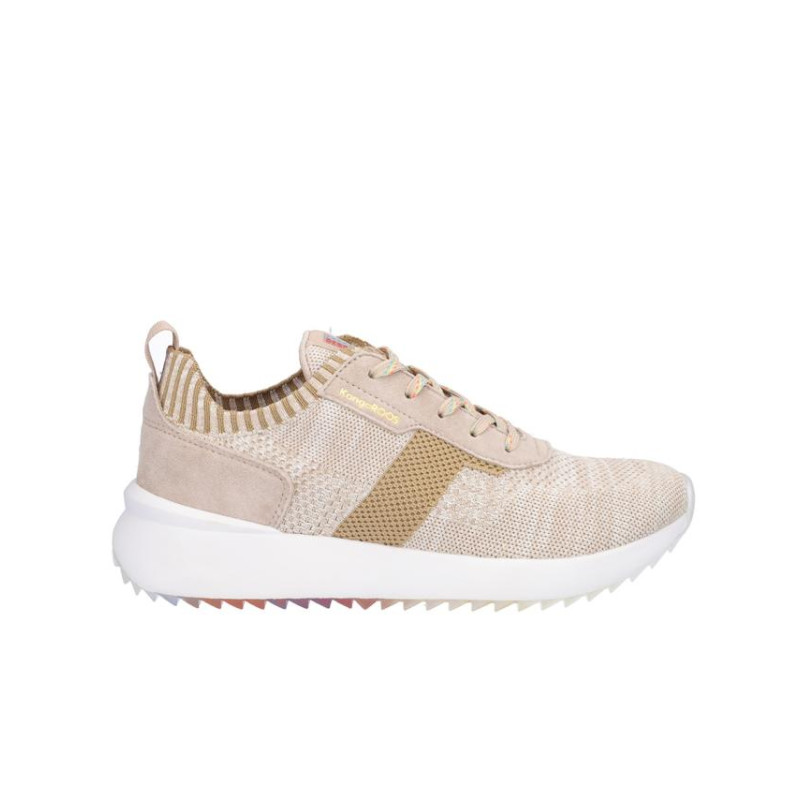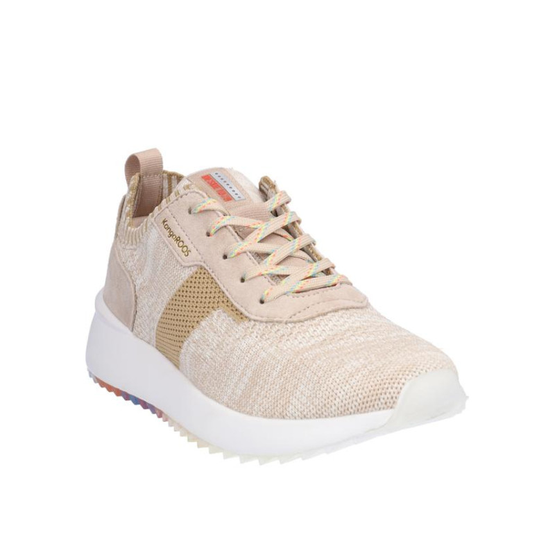 Zapatillas Kangaroos señora textil/serraje combinado beige, cierre de cordones, forro textil con cuello de calcetín, plantilla textil extraíble termoconformada, suela ligera eva de 3 cm altura. Composición: Empeine: Piel/textil. Forro y plantilla: Textil. Suela: sintético.