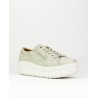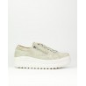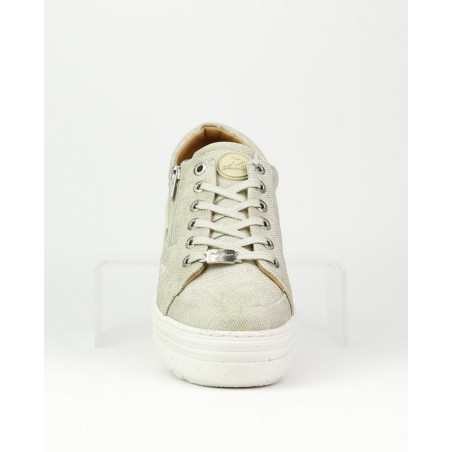 Lona beige. Suela plataforma de 4cm. Cierre cordones y cremallera lateral.