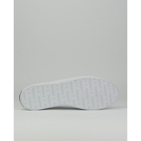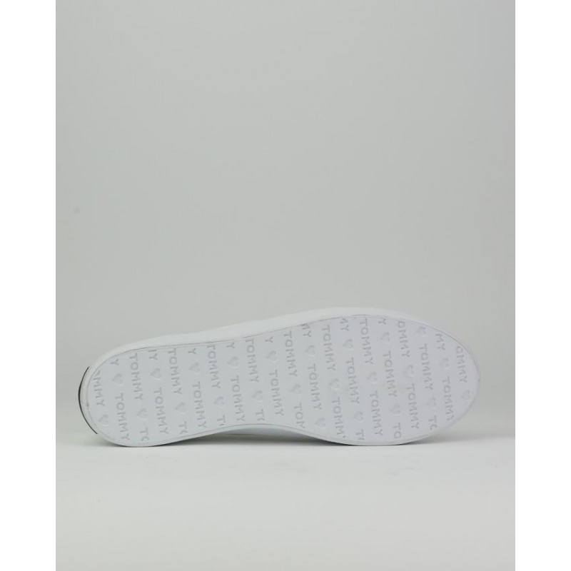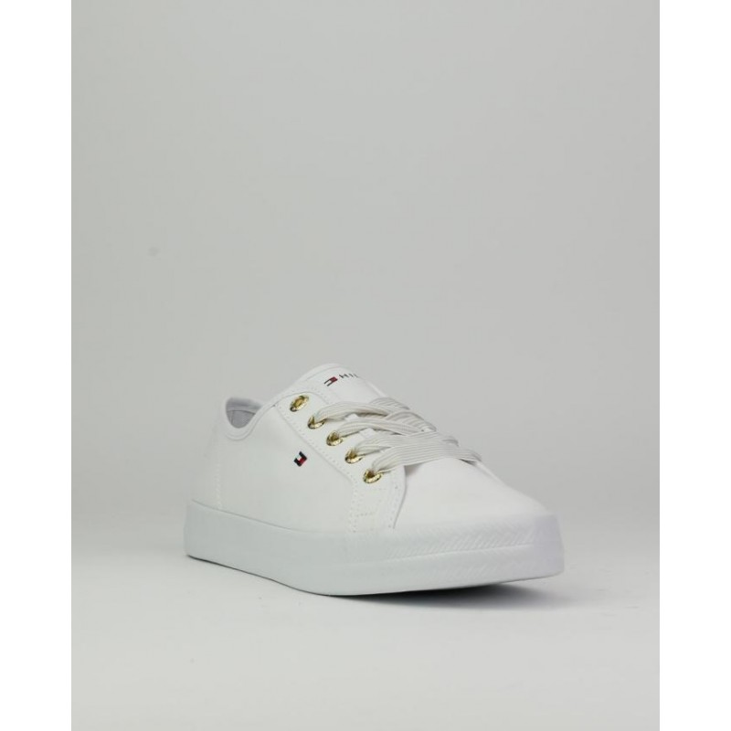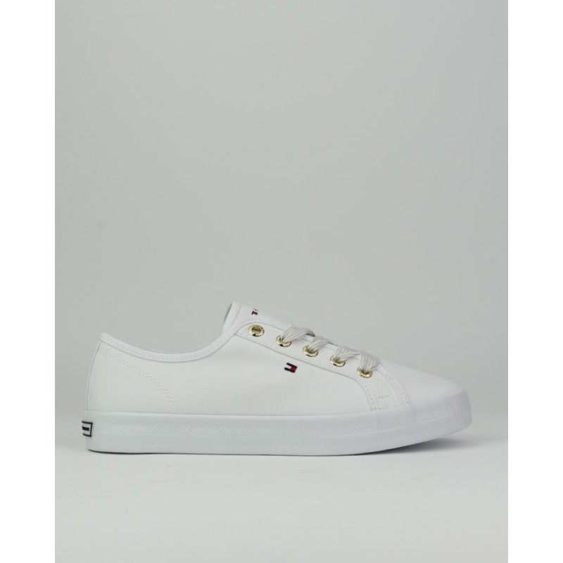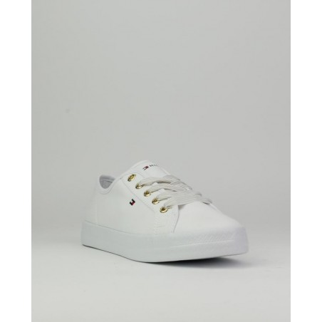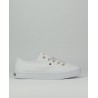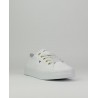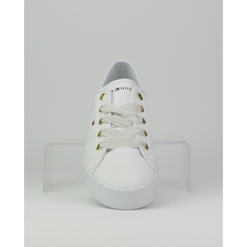 Lona blanca TOMMY, con detalles metalicos en oro. Cierre cordones. Forro tejido