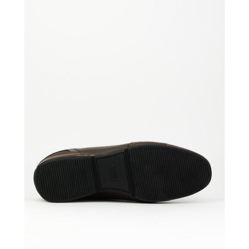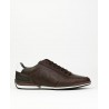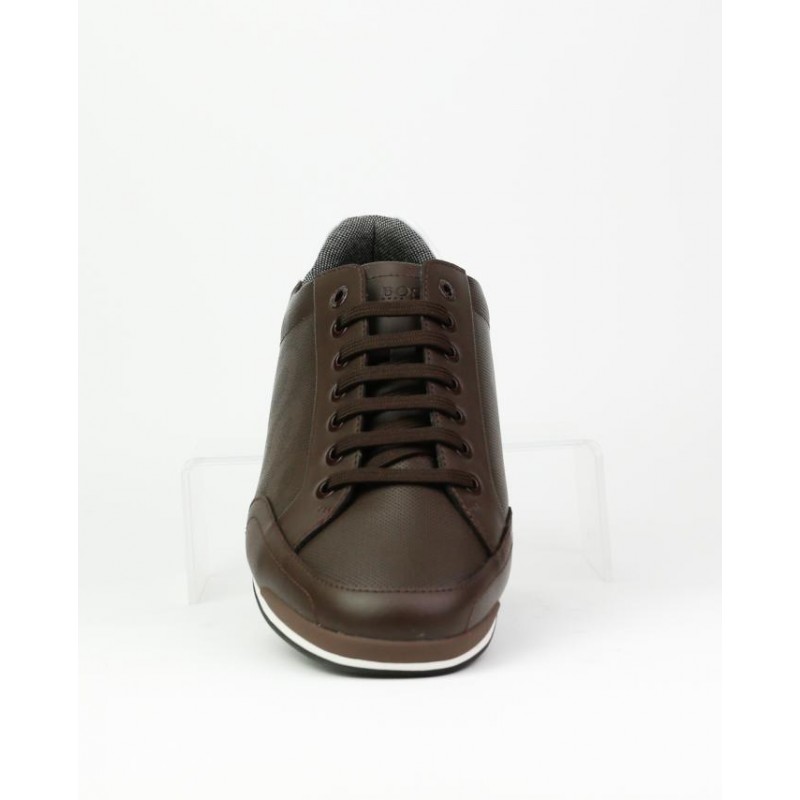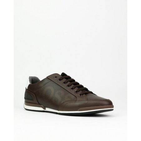Deportivo piel marron con lateral estampado logo Boss. Cierre cordones