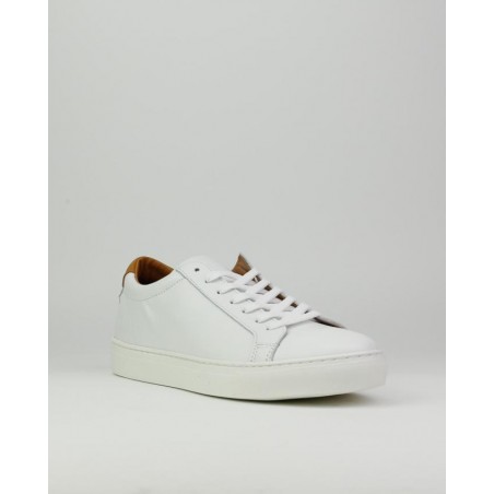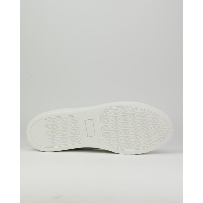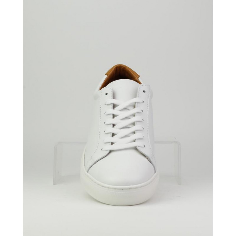 Deportivo piel blanco caballero con cordones. Piso casco piel.