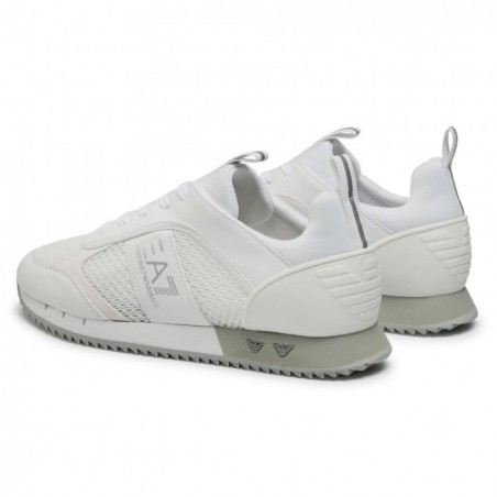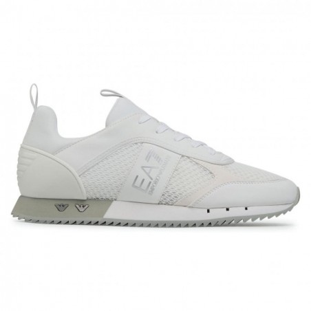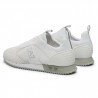 Sneaker piel ecologica blanco combinado con tejido. Suela 2.5 cm de grosor. Cierre cordones.