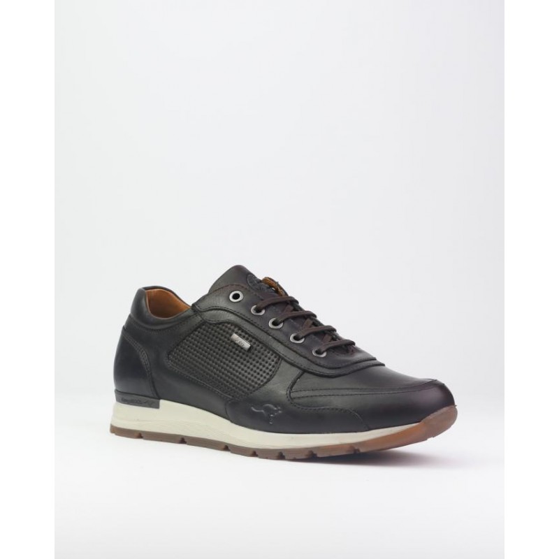 CABALLERO DEPORTIVO, PIEL VACUNO, FORRO PIEL VACUNO Y TEXTIL. RESISTENTE AL AGUA, CORDONES, COLOR MARRON, SUELA 3 CM., PLANTILLA EXTRAIBLE, FABRICADO EN ESPAÑA