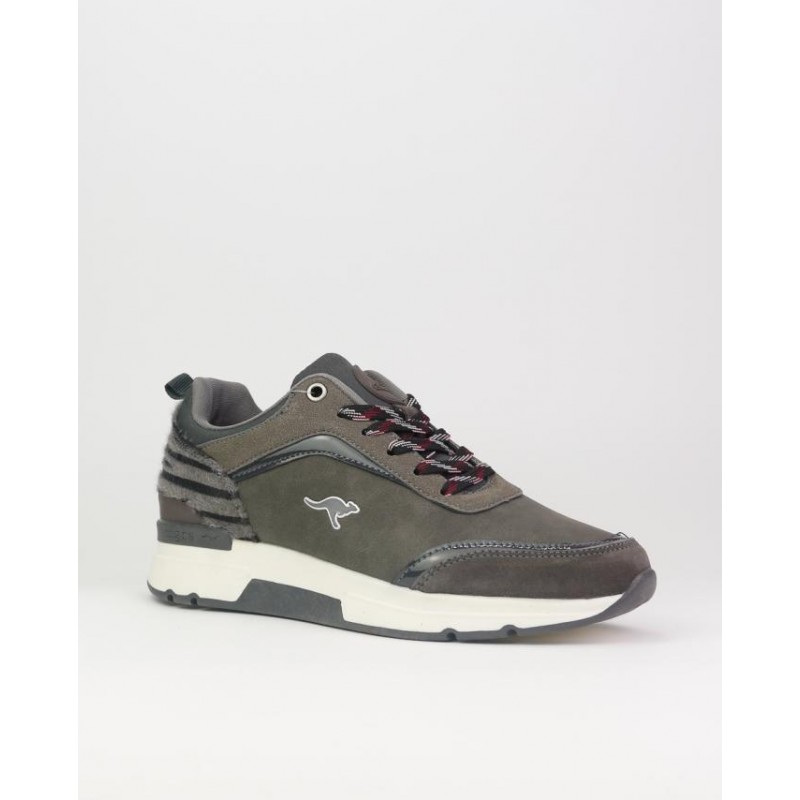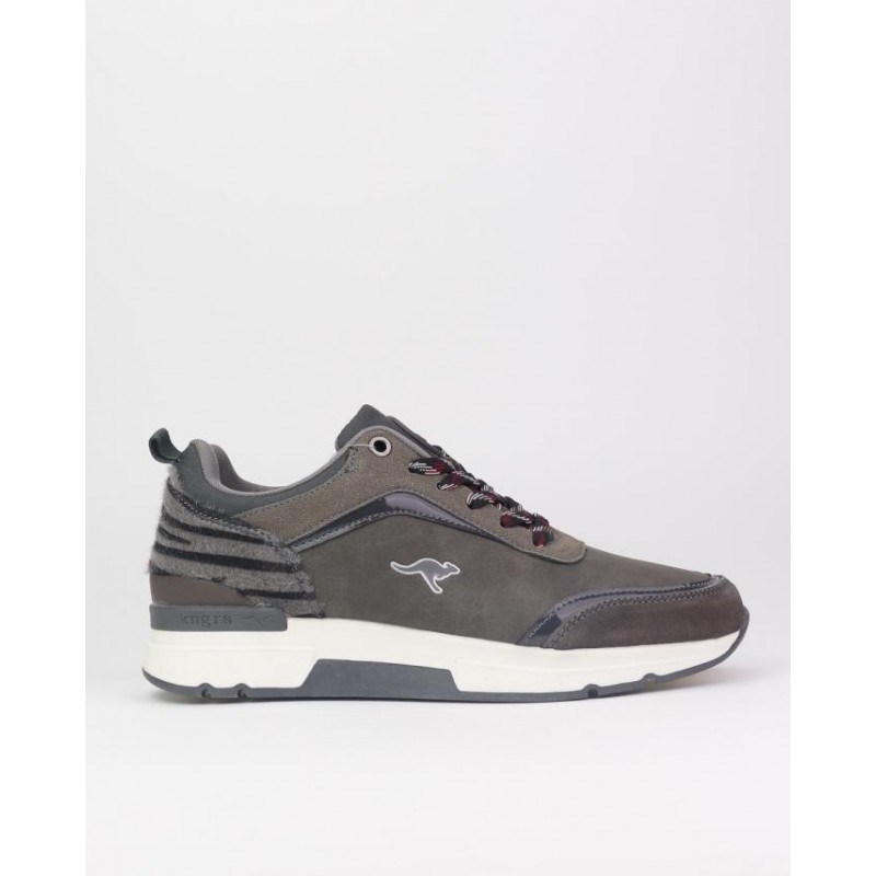 Zapatillas deportivas KangaROOS, combinado piel en gris. Cierre cordones. Suela de 4cm aprox. Plantilla extraible.