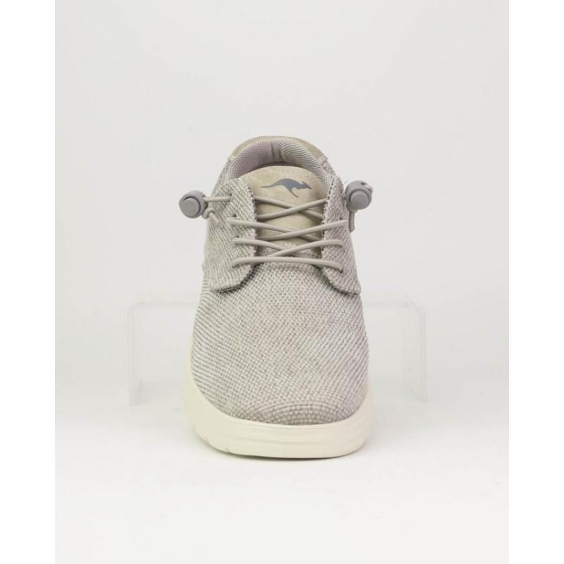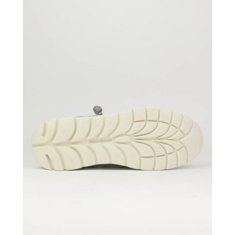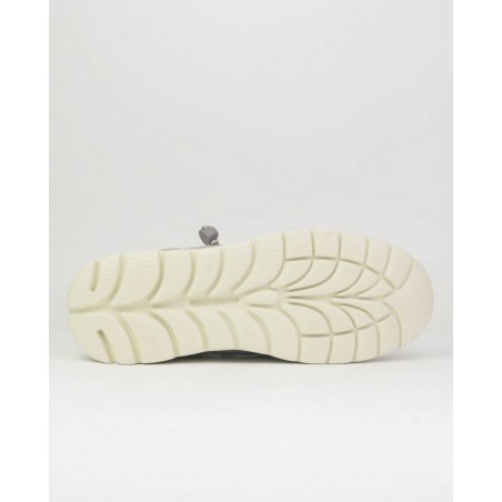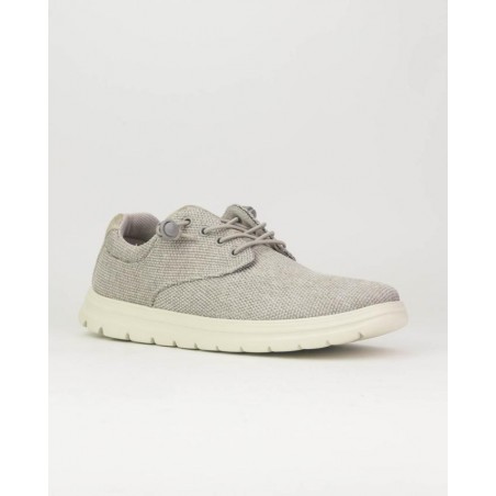 Zapato con cordones elasticos en tejido Hielo (beige claro) combinado con piel Hielo. Forro textil. Elasticos autoajustables. Suela phylon ligero de 3cm aprox. de altura. Plantilla extraible termoconformadas