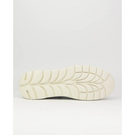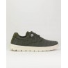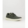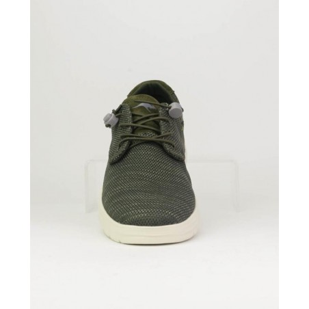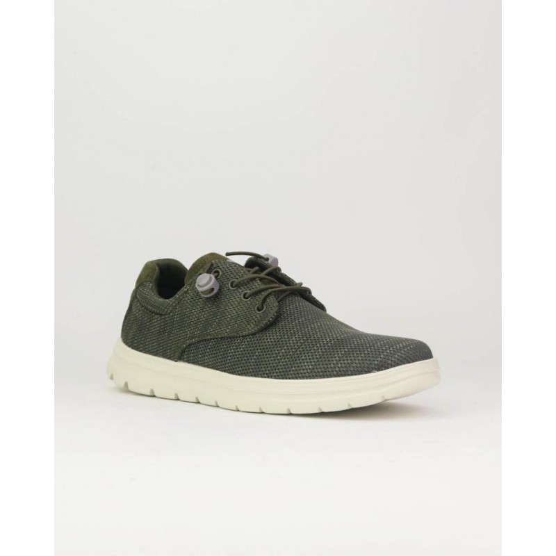 Zapatos con cordones elasticos autoajustables en color kaki. Material tejido combinado con piel. Forro textil. Suela phylon ligero de 3cm. aprox. de altura. Plantilla extraible termoconformada