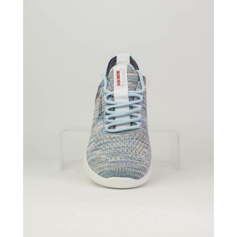 Deportivo señora textil celeste multicolor, cierre de cordones, suela ligera de phylon de 3 cm, forro textil, plantilla extraible temoconformada