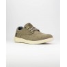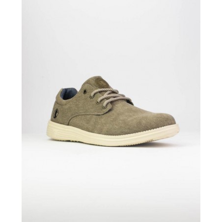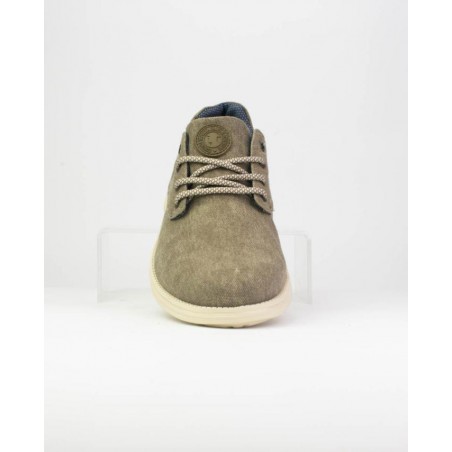 Zapatos con cordones en tejido jeans color taupe. Cierre cordones. Forro textil. Platilla eva termoconformada ligera extraible. Suela phylon ligero con altura 3 cm aprox.