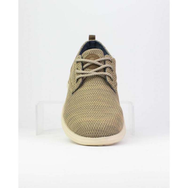 Zapatos con Cordones en material textil taupe. Cierre cordones. Suela ligera phylon con altura de 3cm aprox. Plantilla termoconformada eva ligera extraible.