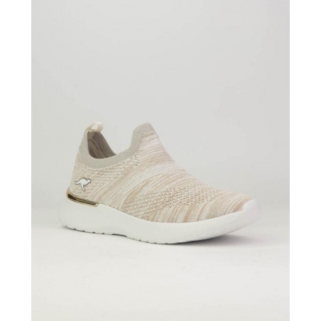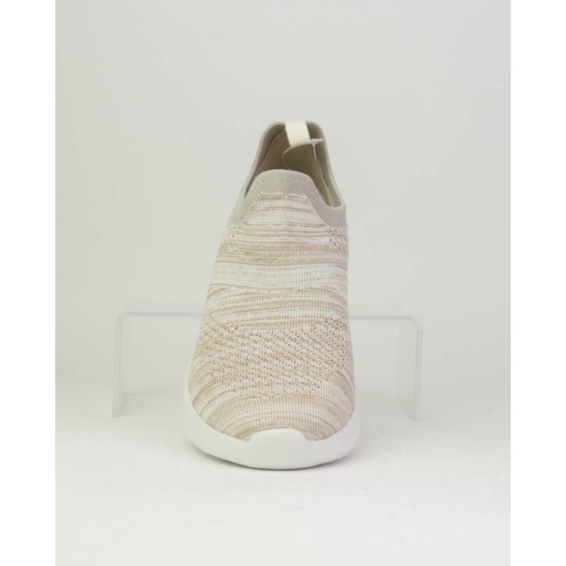 Deportivo señora textil beige, boca elastica de calze, suela ligera de phylon de 3 cm de altura, refuerzo interior de puntera y trasera, plantilla extraible termoconformada