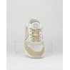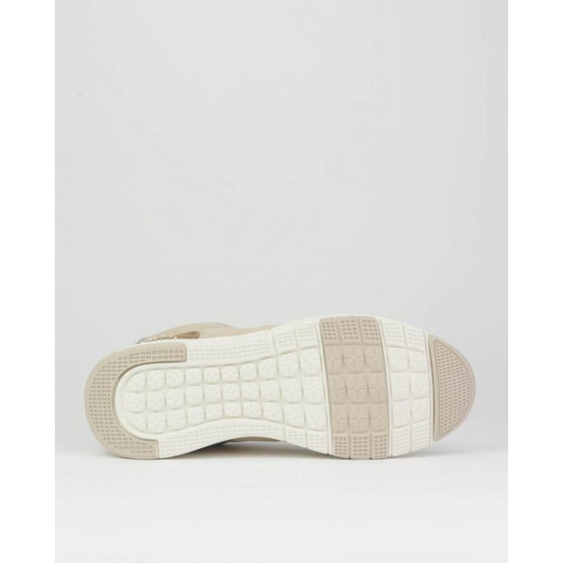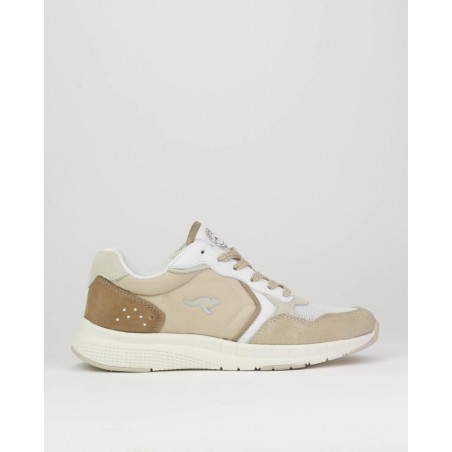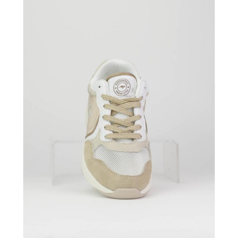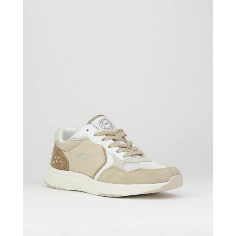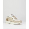 Deportivo señora combinado piel y textil, beige, blanco y marrón, cierre de cordones, suela ligera de phylon de 3 cm de altura, forro textil, plantilla extraible termoconformada.
