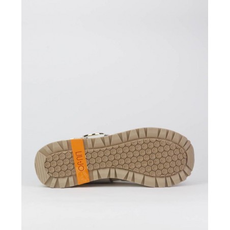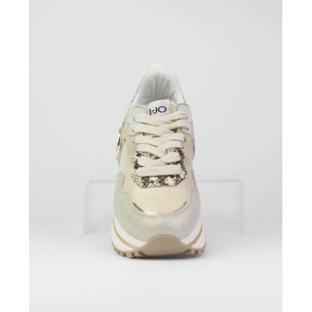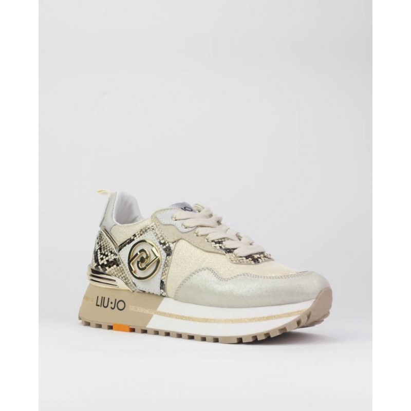 Deportivo señora Liujo combinado beige con serpiente. Suela plataforma de 6cm ligero en microporoso. Cierre cordones.