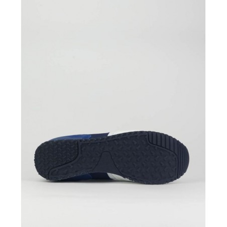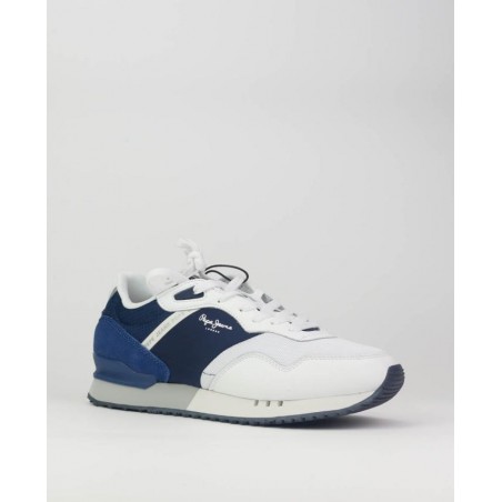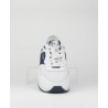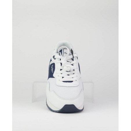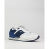 Deportivo piel combinado tejido en blanco. Cierre cordones. Suela microporoso.