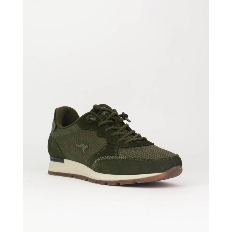 Deportivo caballero, combinado piel y textil kaki, cierre cordones, suela de 3 cm de altura, forro textil, plantilla extraible eva termoconformada, fabricado en España.