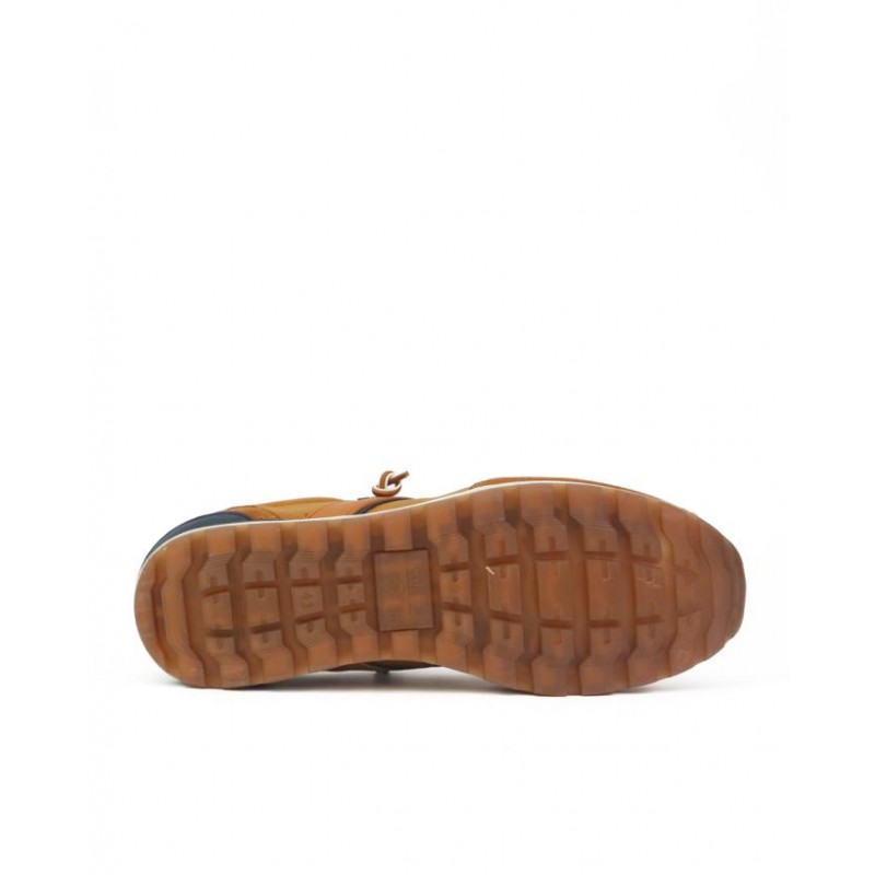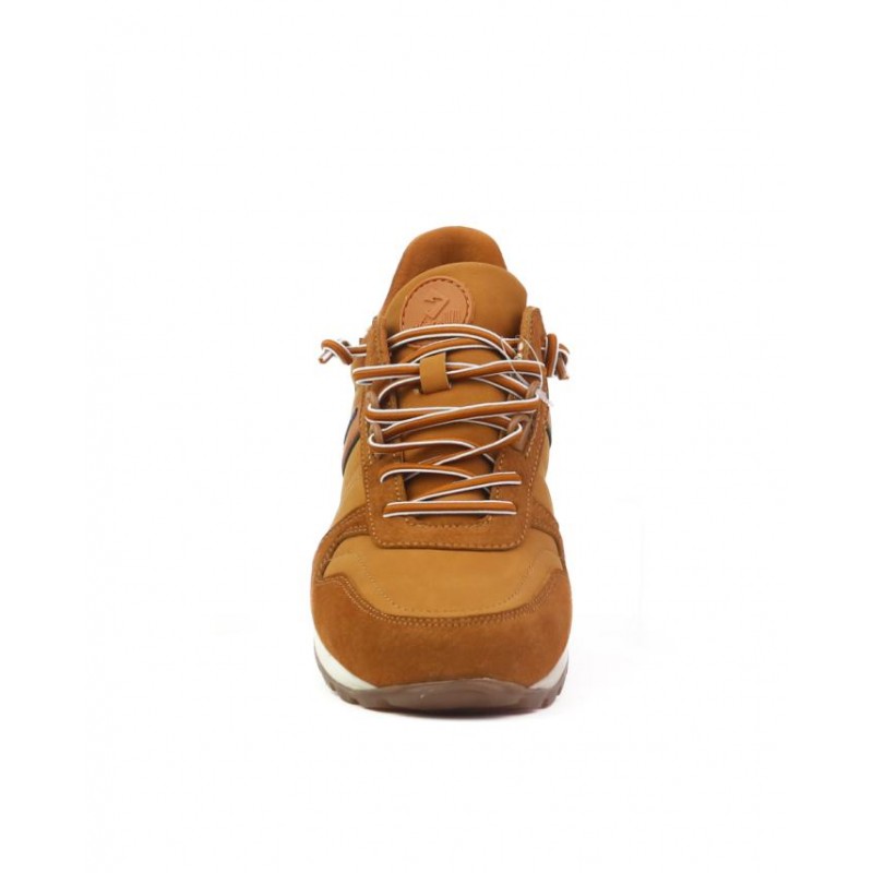 Zapatillas deportivas KangaROOS en camel. Fabricadoen nobuk camel combinado con otros materiales. Forro textil. Plantilla extraible muy comoda. Cierre cordones elasticos a dos tonos. Altura de suela 2.5 cm.Fabricados en España en instalaciones propias.