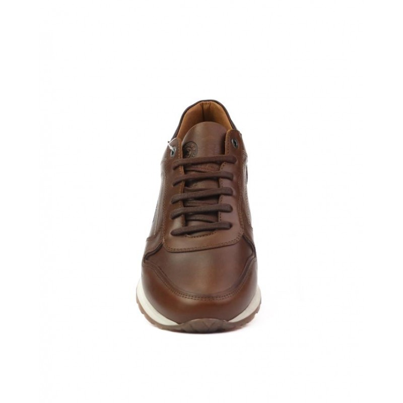 Zapatillas Deportivas KangaROOS en hombre. Fabricado en piel cuero vacuno de primera calidad. Forro interior en piel vacuno cuero, y plantilla tejido extraible. Vivo en color marrón chocolate y aguila en marrón. Altura de suela 2.5 cm. Fabricado en España en instalaciones propias.