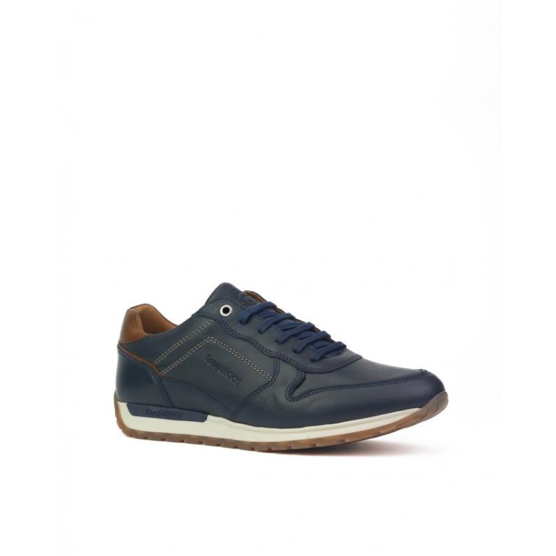 Zapatillas Deportivas KangaROOS hombre. Fabricadas en piel vacuno de color marino de primera calidad. Combinado con vivos en piel cuero y aguila en piel cuero. Forro en piel vacuno color cuero. Plantilla extraible en tejido muy comodas. Altura de suela 2.5 cm