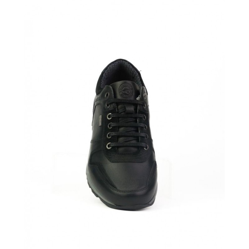 Zapatillas Deportivas Hombre en negro. Fabricado en piel vacuno de primera calidad. WATER RESISTANT. Forro en tejido con membrana resistente al agua y tecnología XDRY. Cierre cordones. Plantilla en tejido extraible muy comodas. Altura de suela 3 cm. Fabricado en España en fabrica propia.