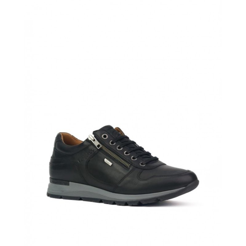 Zapatillas Deportivas KangaROOS Hombre. Fabricado en piel vacuno negro de primera calidad. Forro tejido con membrana WATER RESISTANT y tecnología XDRY. Cierre cordones y una cremallera exterior para puesta y retirada del zapato. Plantilla en tejido extraible muy comoda. Altura de suela 3 cm