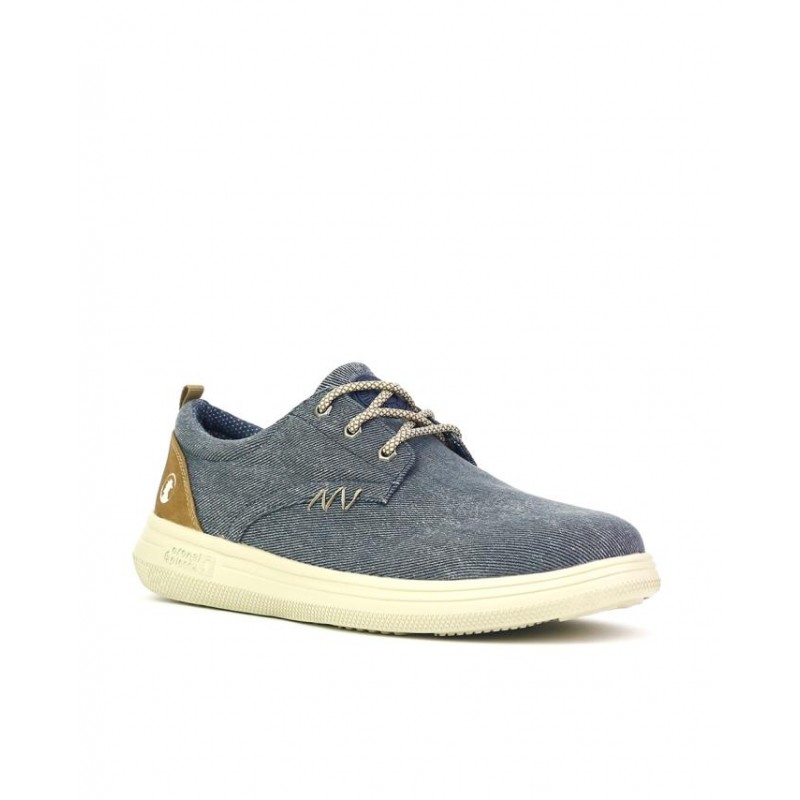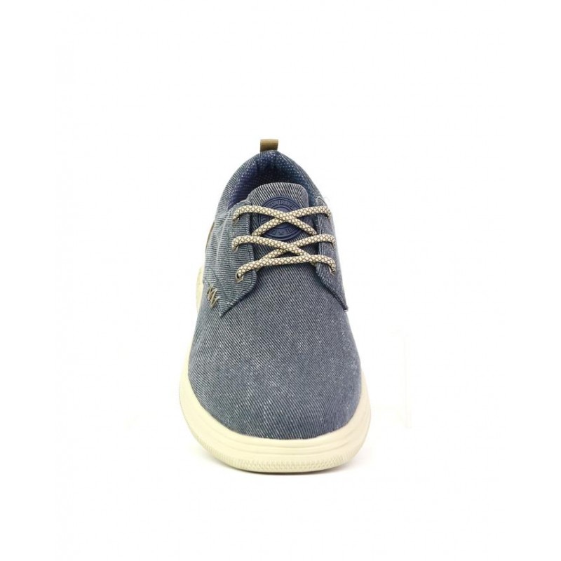 Zapatos con cordones en tejido jeans azul, cierre cordones, forro textil, plantilla extraible de eva termoconformada, suela ligera de phylon de 3 cm de altura.Composición: Empeine: Textil. Forro y plantilla: Textil. Suela: Fibra sintetica. Componente principal: Textil
