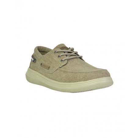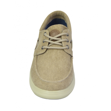 Zapatos con cordones en tejido jeans beige, cierre cordones, forro textil, plantilla extraible de eva termoconformada, suela ligera de phylon de 3 cm de altura.Composición: Empeine: Textil. Forro y plantilla: Textil. Suela: Fibra sintetica. Componente principal: Textil