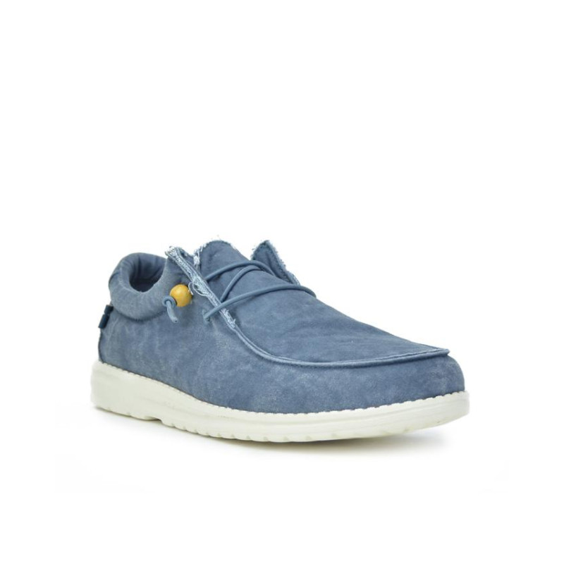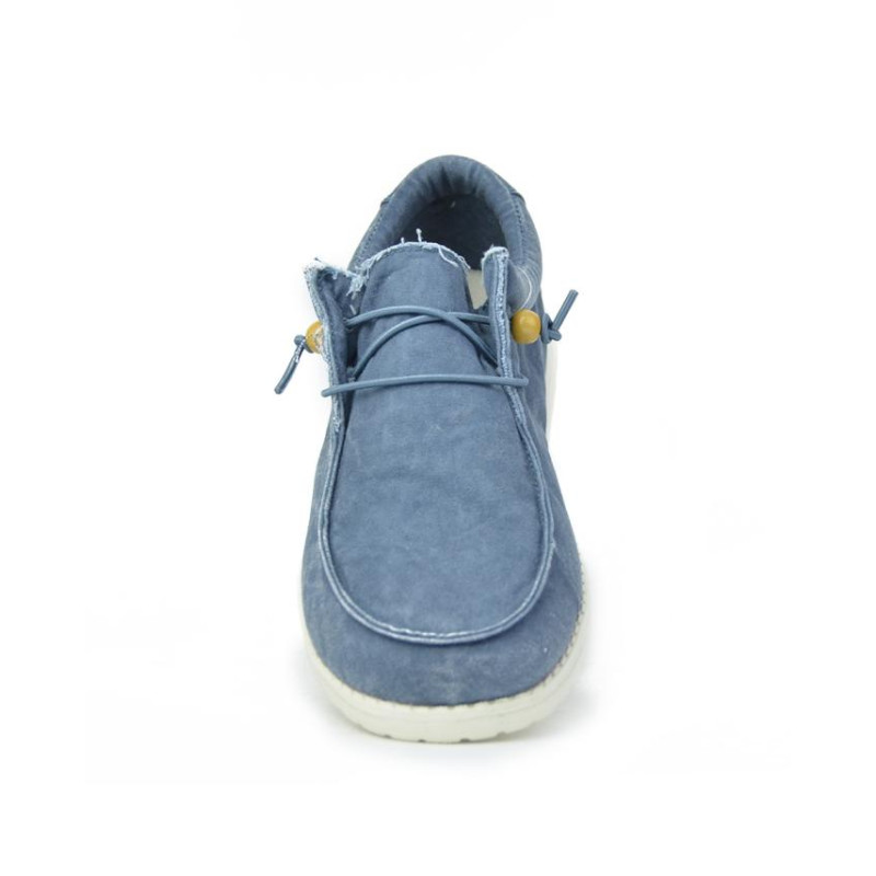 Zapatillas caballero textil en color azul lavado, cierre de cordones elásticos, forro textil, plantilla extraible textil, suela ligera de phylon de 2,5 cm altura. Composición: Empeine: Textil. Forro y plantilla: Textil. Suela: Eva