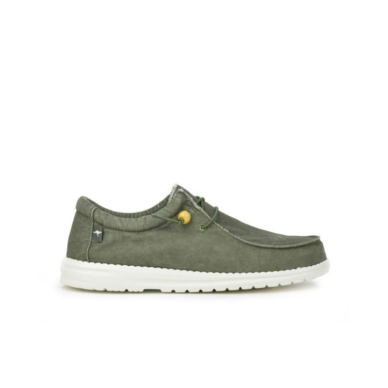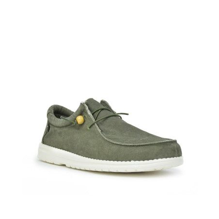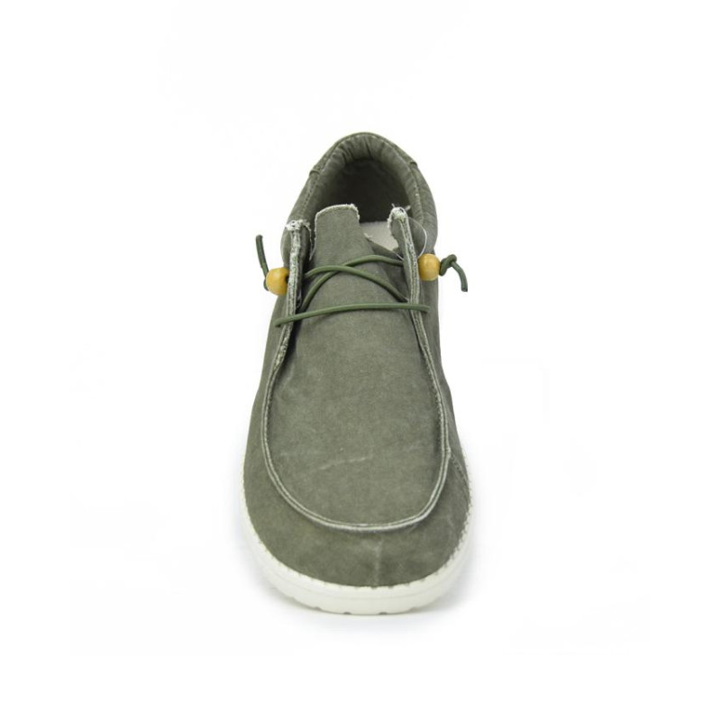 Zapatillas caballero textil en color kaki lavado, cierre de cordones elásticos, forro textil, plantilla extraible textil, suela ligera de phylon de 2,5 cm altura. Composición: Empeine: Textil. Forro y plantilla: Textil. Suela: Eva