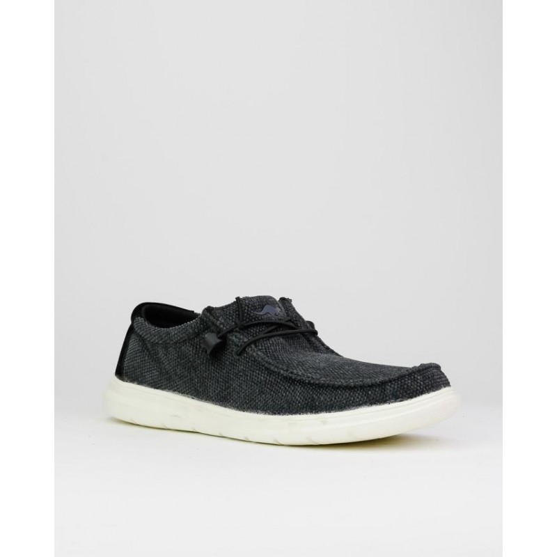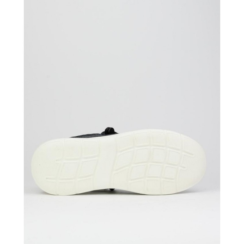 Zapato caballero tejido combinado piel negro. Cierre cordones. Suela ligera.