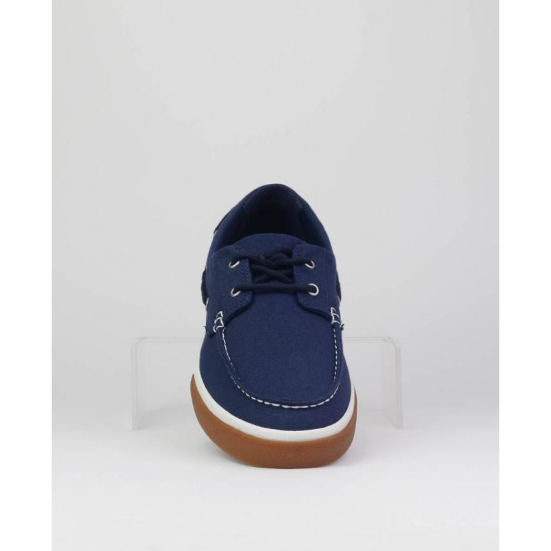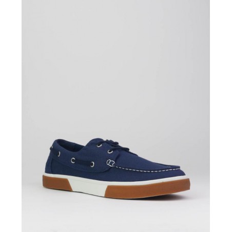 Náutico caballero Timberland. Textil con logo lateral grabado. Forro textil. Suela en blanco con adornos en goma. Cierre con cordones.