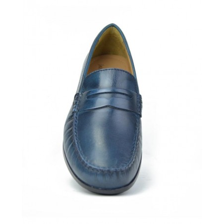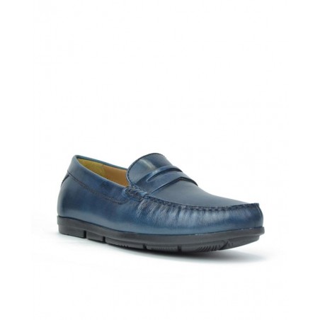 Mocasin en piel vacuno de primera calidad en color marino. Forro de piel. Suela de goma.
