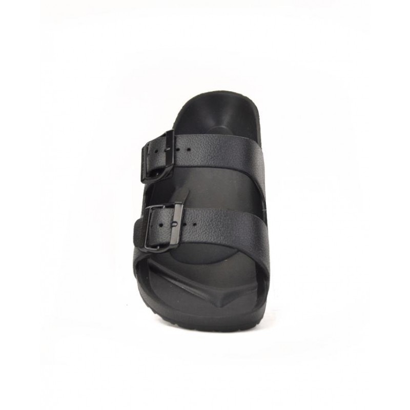 Sandalia señora negro con corte, planta y suela fabricado en otros materiales y cierre de dos hebillas. Composición: Empeine: otros materiales. Forro: sin forro. Planta y suela: otros materiales.