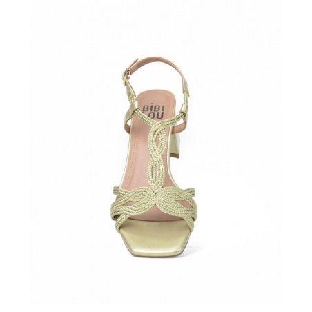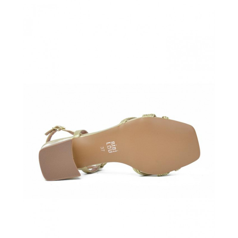 SANDALIA marca BIBI LOU modelo SANDALIA TACON. Fabricado en color oro, cierre con hebilla. Suela personalizada.