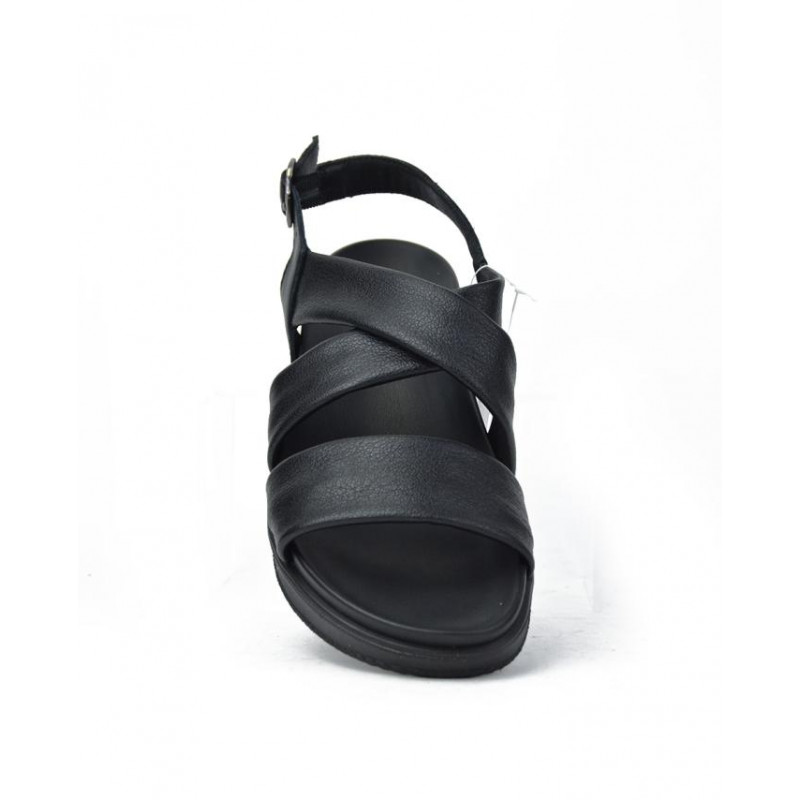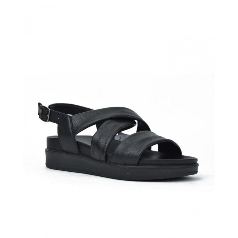 SANDALIA marca IMAC modelo SANDALIA TRES PIEZAS CRUZADO CENTRAL. Fabricado en piel color negro, cierre con hebilla. Suela personalizada.