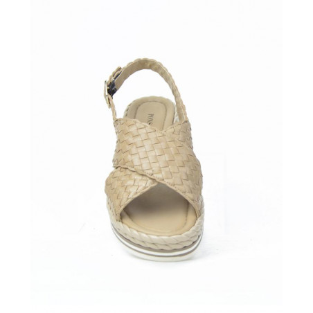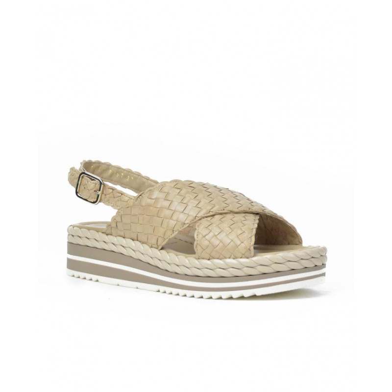 SANDALIA marca PONS QUINTANA modelo SANDALIA CRUZADA TRENZADO PISO TUBULAR. Fabricado en piel color taupe, cierre con hebilla. Suela personalizada.