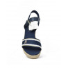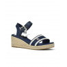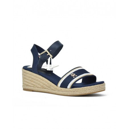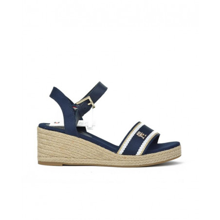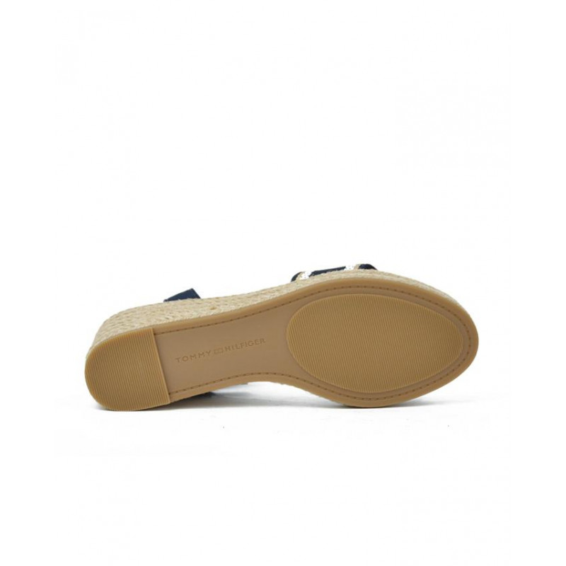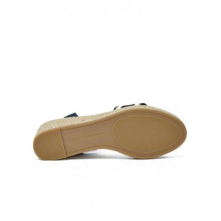 SANDALIA marca TOMMY HILFIGER modelo SANDALIA DOS PIEZAS CUÑA ESPARTO. Fabricado en piel color marino, cierre con hebilla. Suela corrida personalizada.