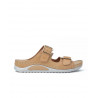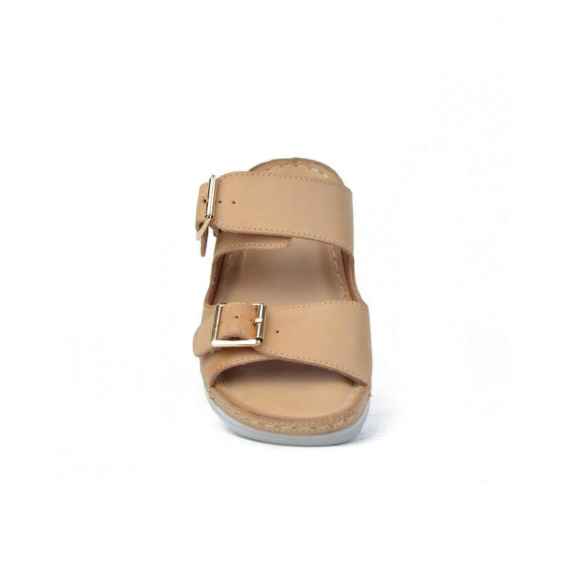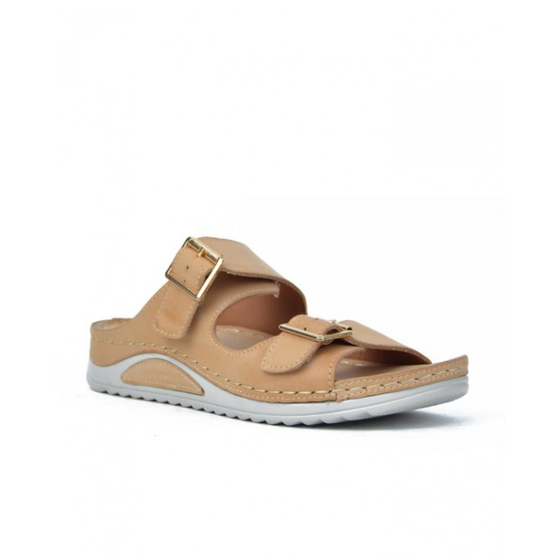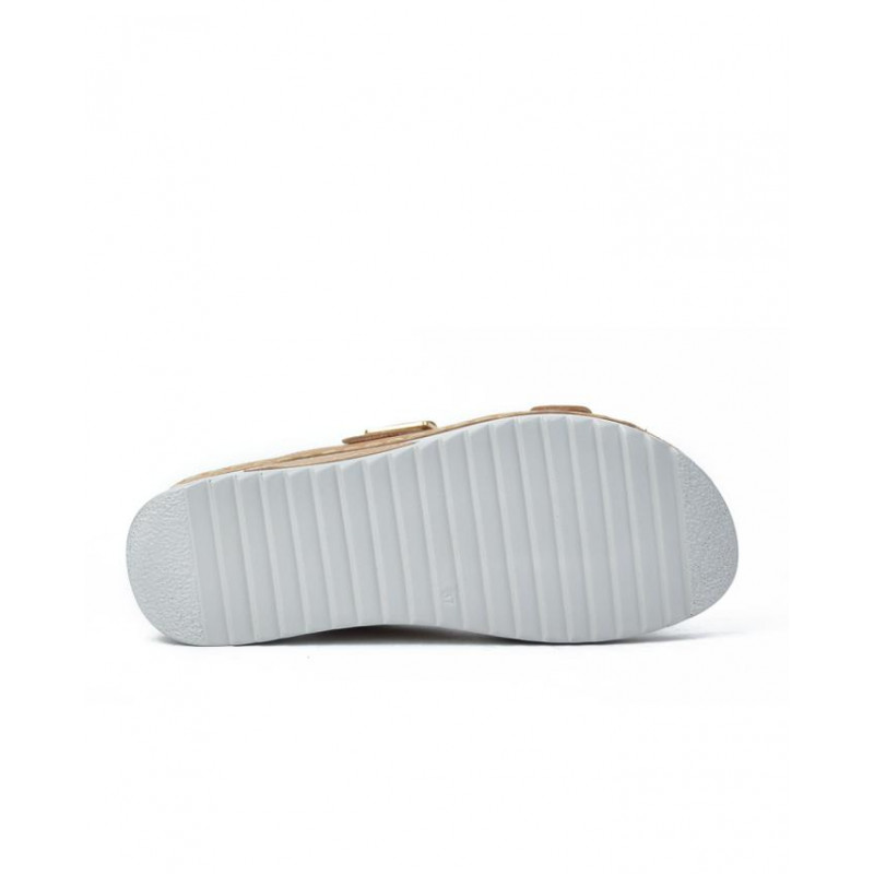 Sandalia señora de Javier Larrainzar fabricada en piel color cuero, planta confor de piel cosida a la suela, forro de piel, cierre de dos hebillas, suela ligera de unos 3,5 cm altura. Composición: Empeine: Piel. Forro y planta: Piel. Suela: Fibra sintética. Componente principal: Piel.