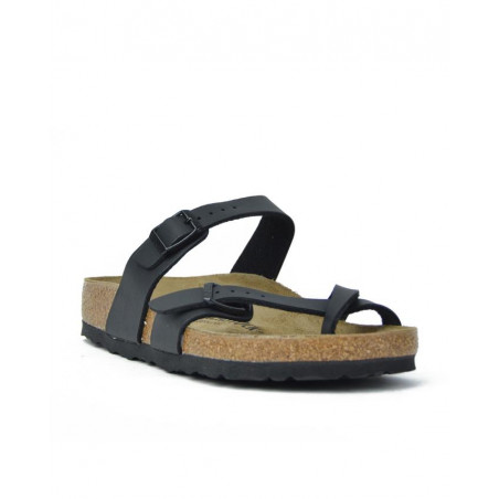 Sandalia marca BIRKENSTOCK modelo SANDALIA SEÑORA DEDO MAYARI BIRKO FLOR. Fabricado en color negro, cierre con dos hebillas. Suela personalizada.