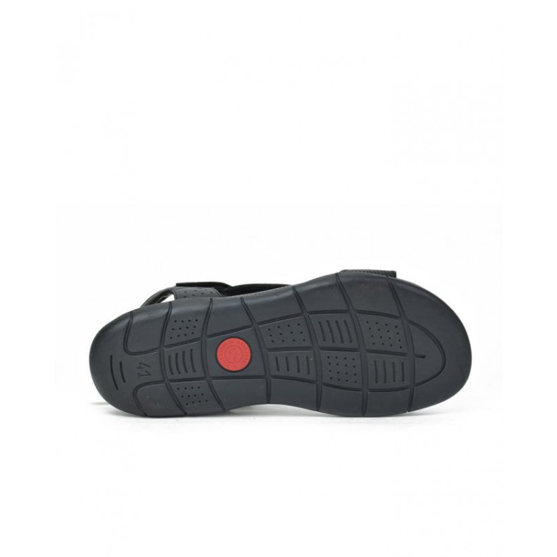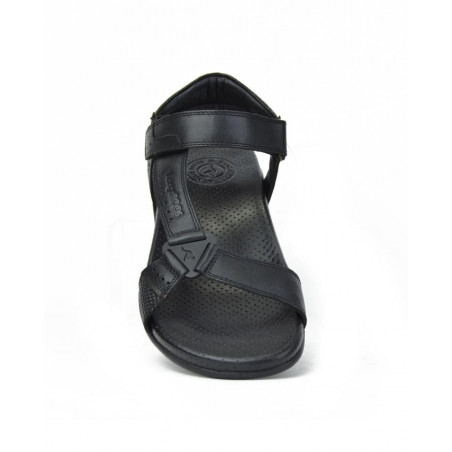 Sandalia de caballero en piel negro, cierre de velcro, forro de piel, planta de piel perforada, suela de 2,5 cm altura. Composición: Empeine: Piel. Forro y planta: Piel. Suela: Fibra sintética. Componente principal: Piel.
